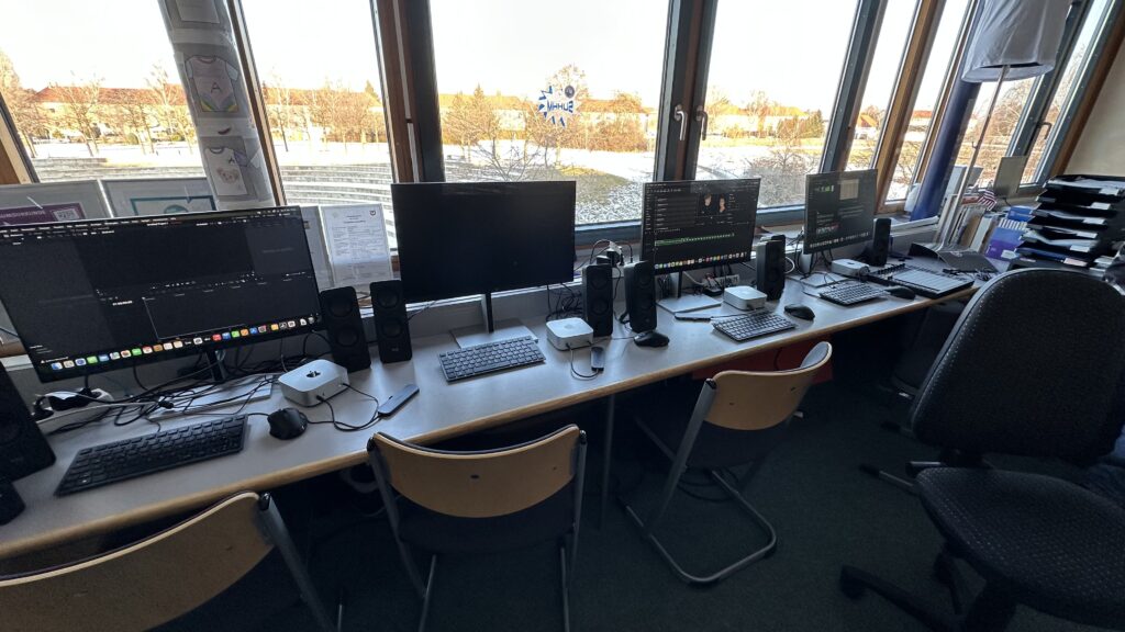 Am 08. Januar wurde am Agricolagymnasium ein neuer Medienproduktionsraum als Teil unseres wachsenden Maker Spaces eröffnet. Dieser Raum ist ein wichtiger Schritt in der Weiterentwicklung unseres Digitalisierungstraktes und bietet professionelle Möglichkeiten für Video- und Audiobearbeitung. Ausgestattet ist er mit sechs iMacs, leistungsstarker Produktions- und Schnittsoftware sowie hochwertigen Kameras und Objektiven – alles, was für kreative Medienprojekte benötigt wird.